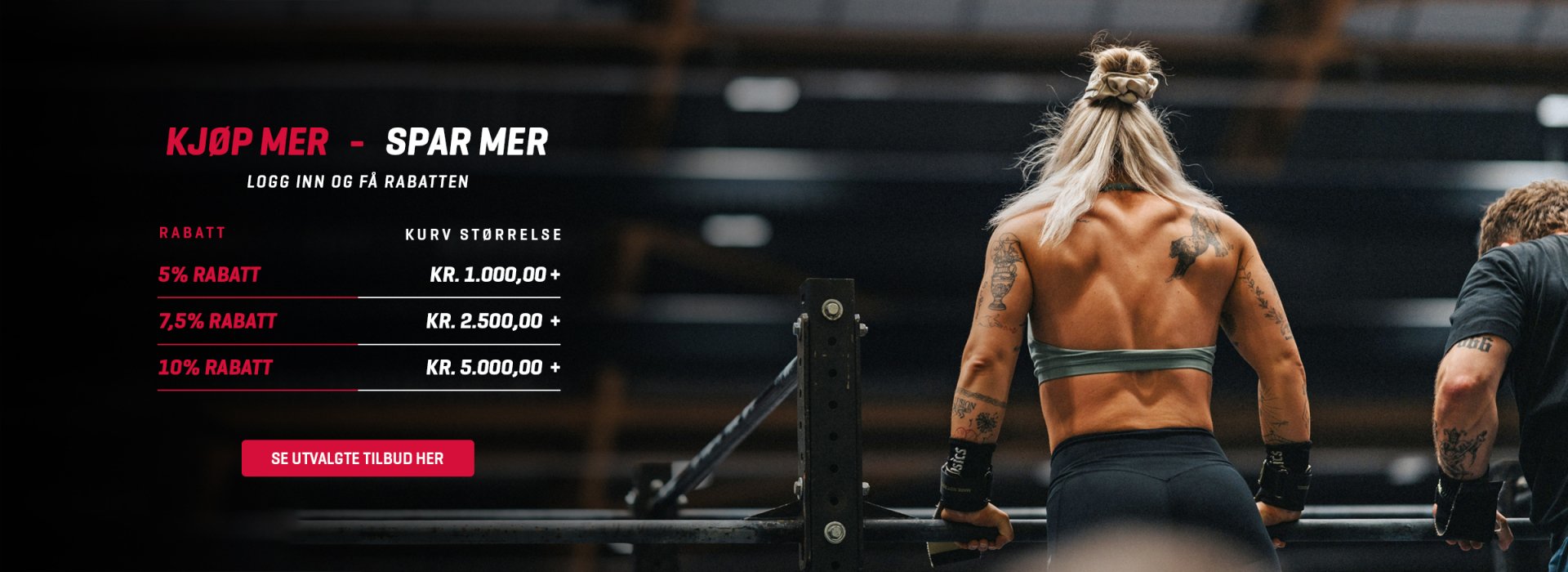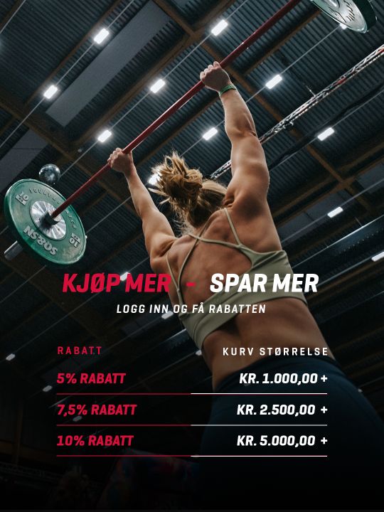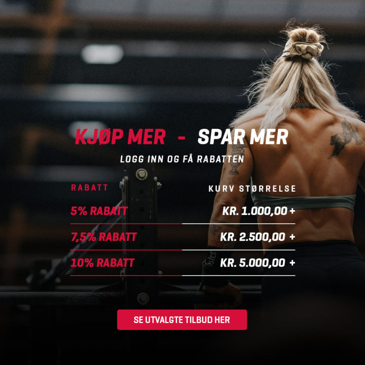 Innen utstyr til cardio trening har vi blant annet tredemøller, crosstrainere, motionsykler og romaskiner, innen crossfit har vi blant annet wall balls, prowler sleder og kettlebells, og innen styrketrening har vi blant annet treningsbenker, håndvekter og vektstenger. I vårt store og differensierte utvalg finner du også en verden av utstyr til yoga, pilates, recovery og andre treningsformål.