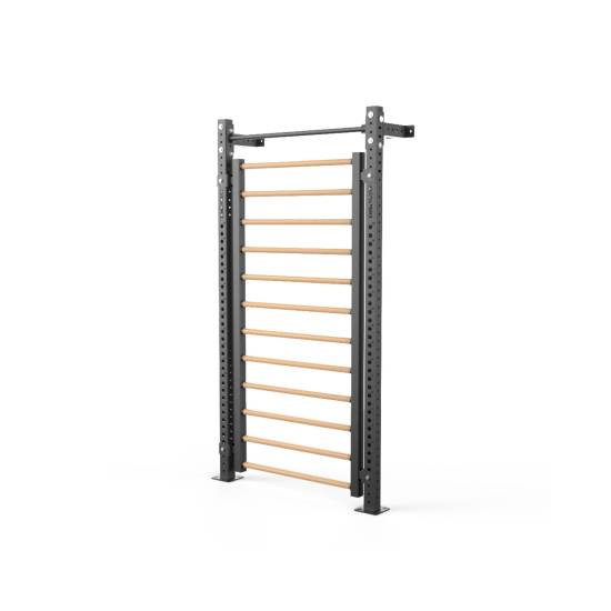 Stall bars’ene er fremstillet af lakeret bøgetræ og består af 12 runde bjælker (diameter 37 mm, center til center afstand 18 cm) med solide mål og finish. Med en højde på 208,5 cm, bredde på 125 cm og dybde på 8,6 cm, er denne attachment designet til at give dig både muligheder og fleksibilitet i din træning, samtidig med at den fylder minimalt i dybden.