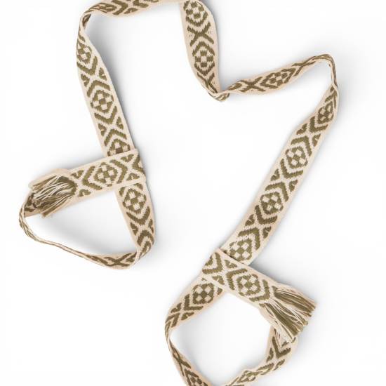 Det vakre mønsteret og de naturlige materialene gjør beltet til mer enn bare et praktisk redskap – det er også et estetisk tilbehør.